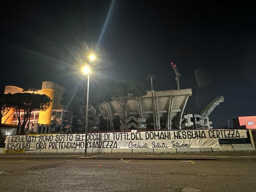 “I risultati sono sotto gli occhi di tutti, del domani nessuna certezza. Iervolino, ora pretendiamo chiarezza. Cordiali Saluti Salerno“. Questo il testo dello striscione che la Curva Sud Siberiano ha apposto fuori la tribuna dell’Arechi nella serata di oggi.